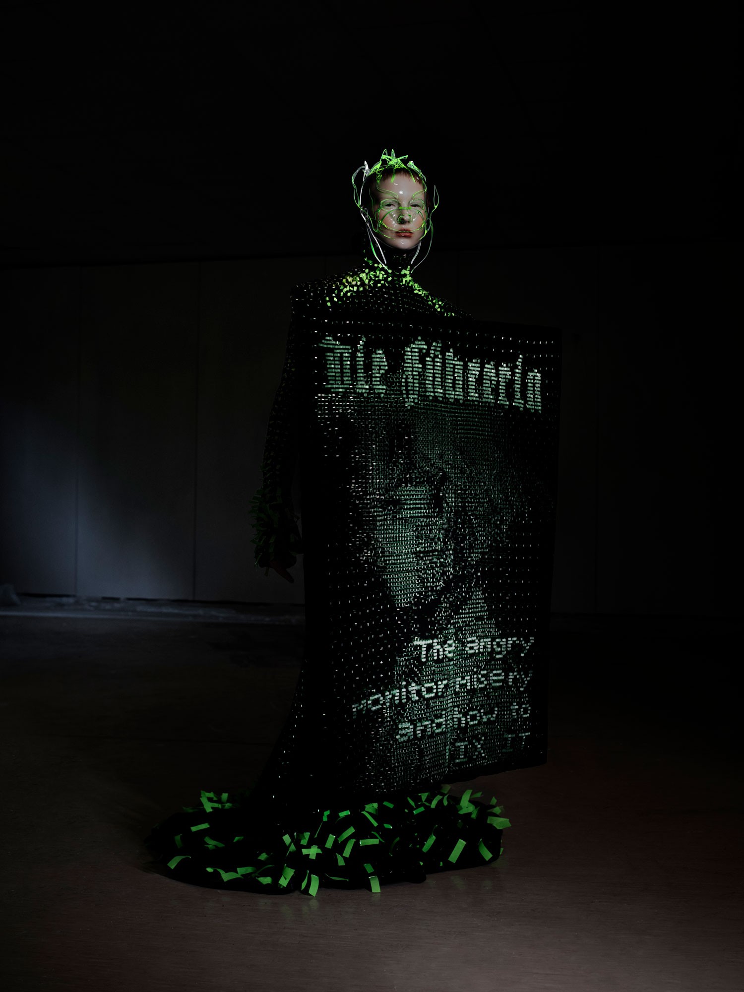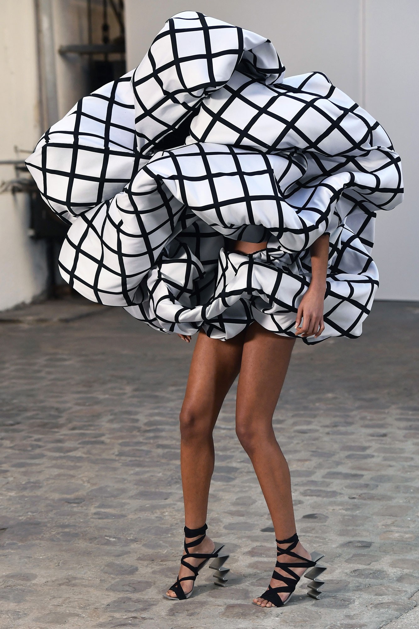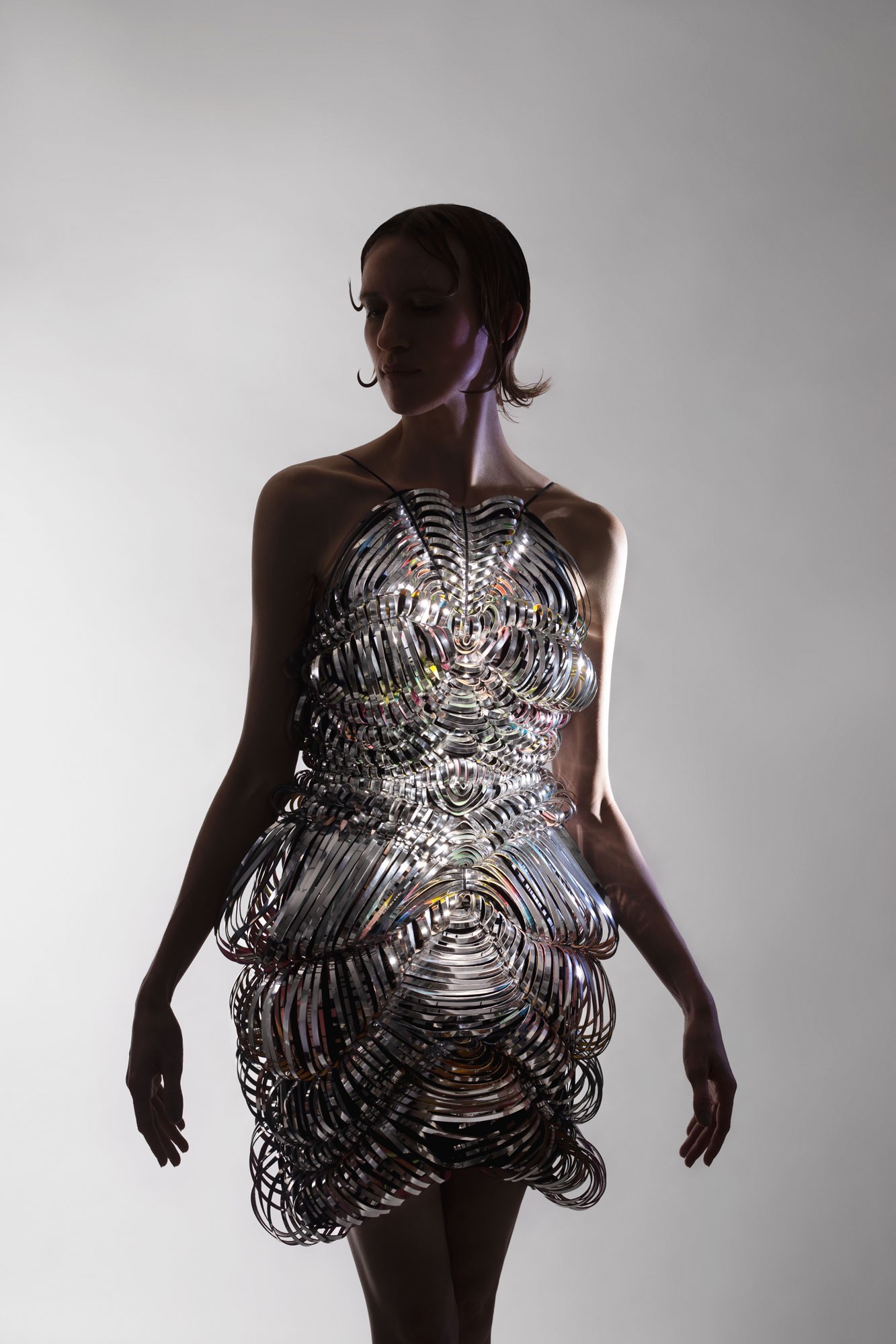 Flora Miranda in collaboration with Esther Stocker, Crinkle Dress from the Cyber Crack collection, 2020 © Etienne Tordoir