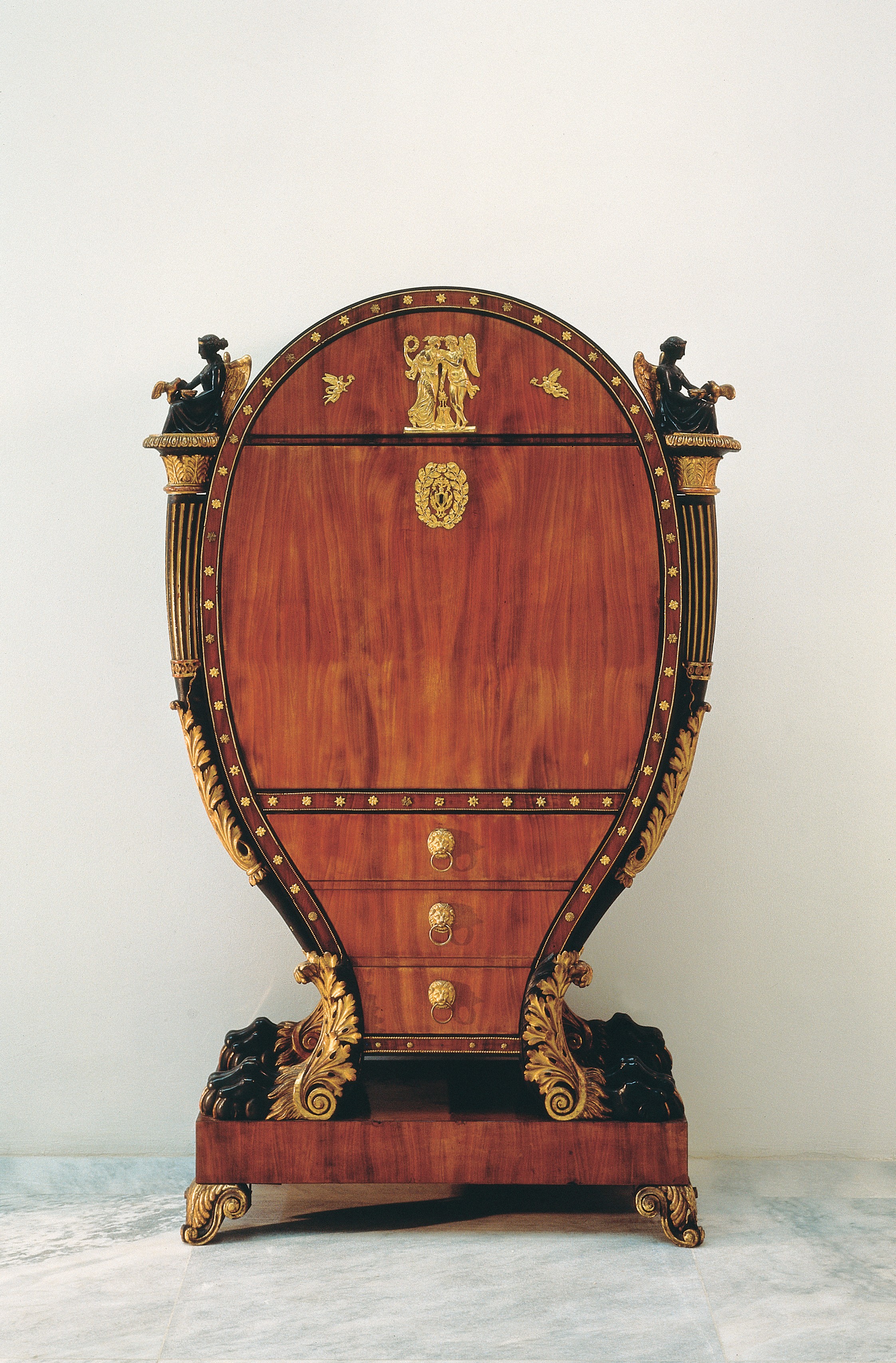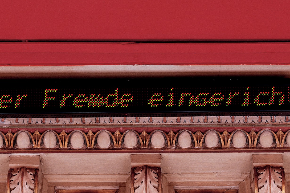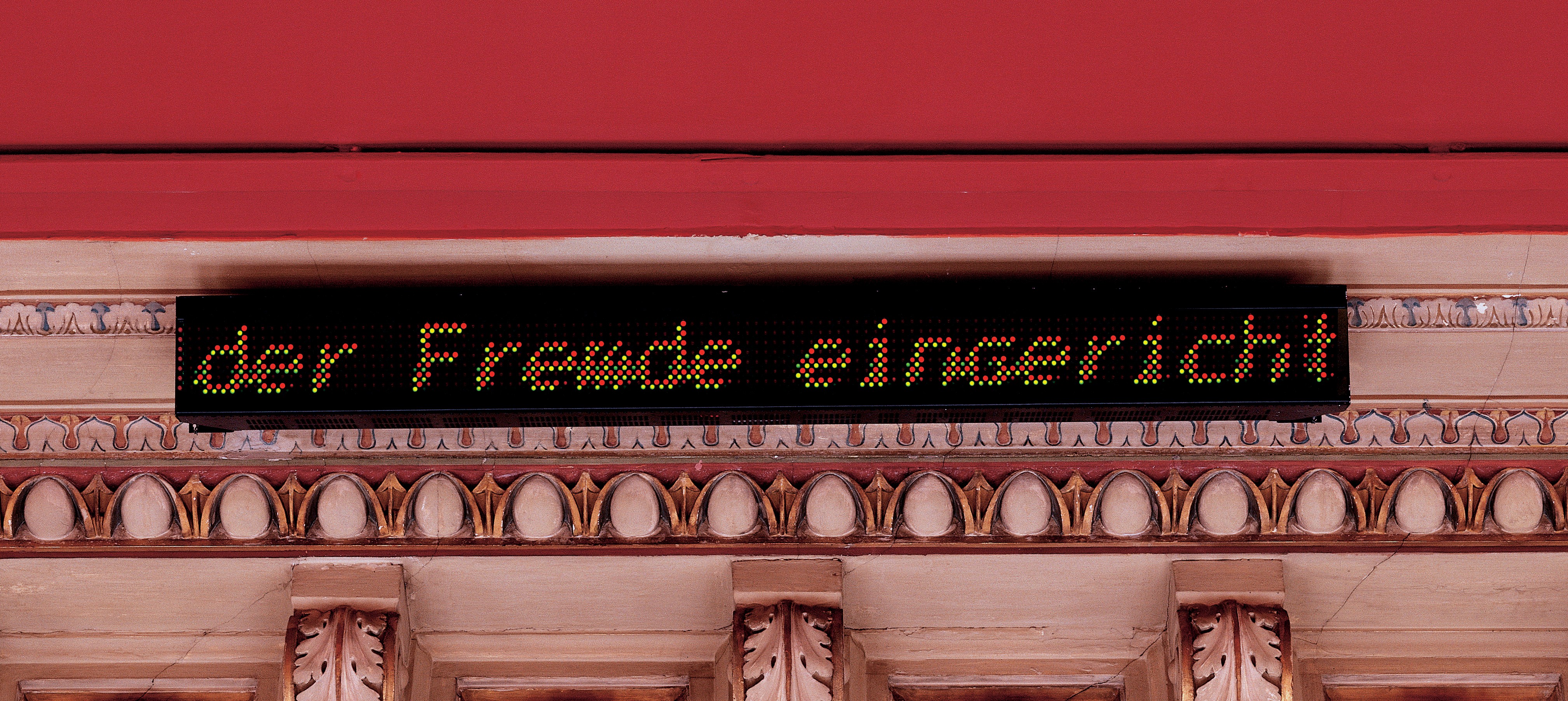 The Permanent Collection Empire Style Biedermeier was designed by American artist Jenny Holzer. Her signature is particularly evident in the illuminated texts attached to the stucco cornice.