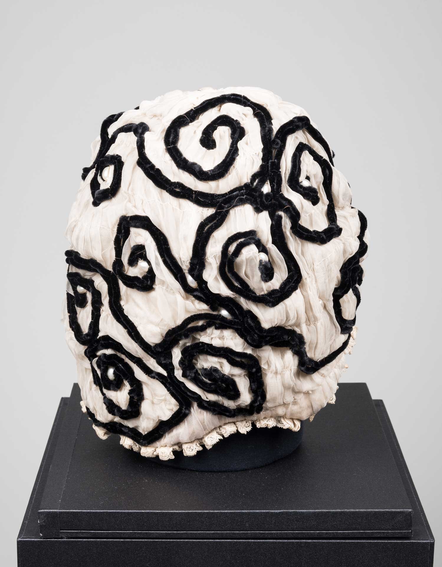 Josef Hoffmann, bonnet, 1900 Execution: Wiener Werkstätte Silk, synthetic fabric, cotton, wire; embroidered, machine lace, sewn © MAK/Katrin Wißkirchen