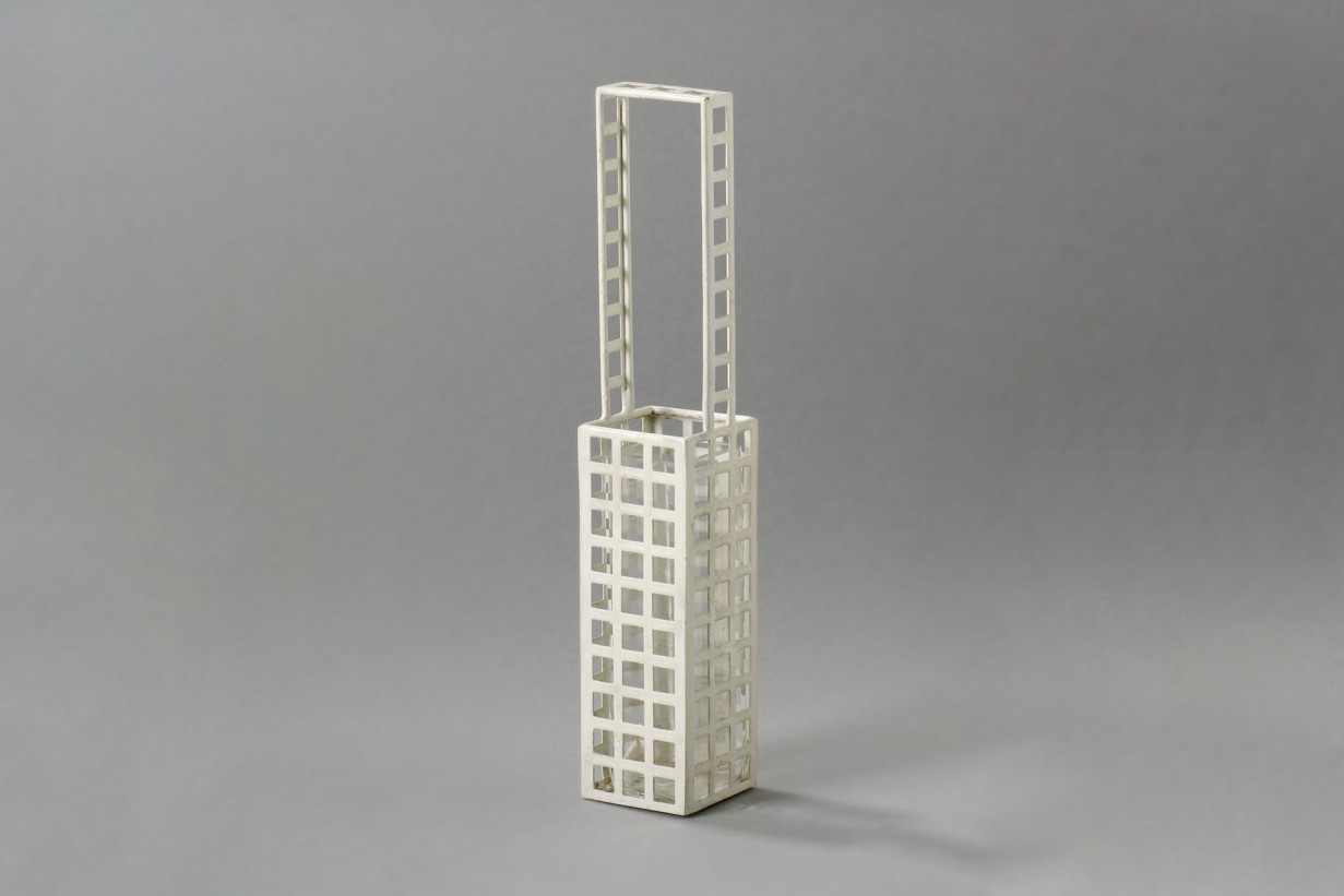Josef Hoffmann, vase with handle and glass insert, 1905 Execution: Wiener Werkstätte Sheet iron, painted; glass © MAK/Georg Mayer