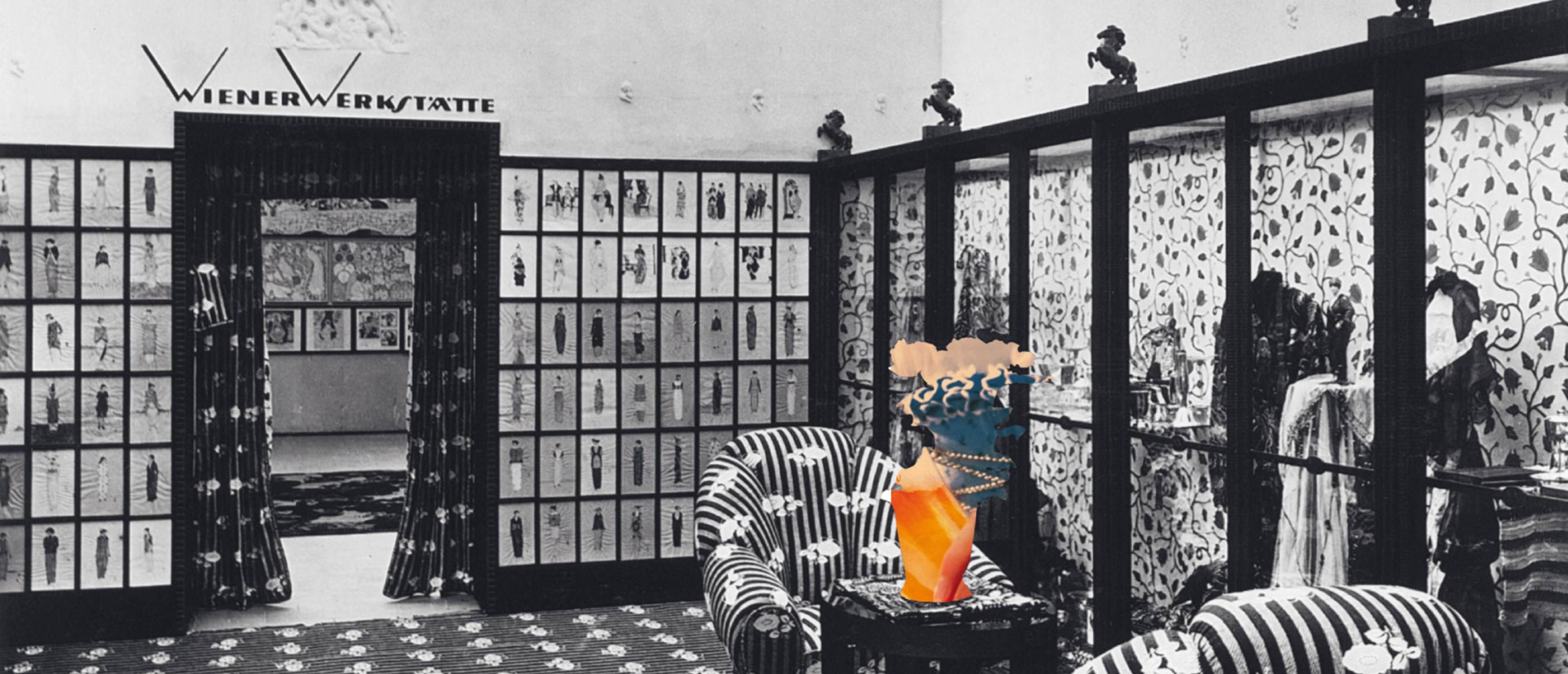 Dagobert Peche, showcase for the Vienna Kunstschau, 1920 Softwood, painted blue and white; Wiener Werkstätte wallpaper Laube [Arbor] after a design by Dagobert Peche © MAK/Georg Mayer