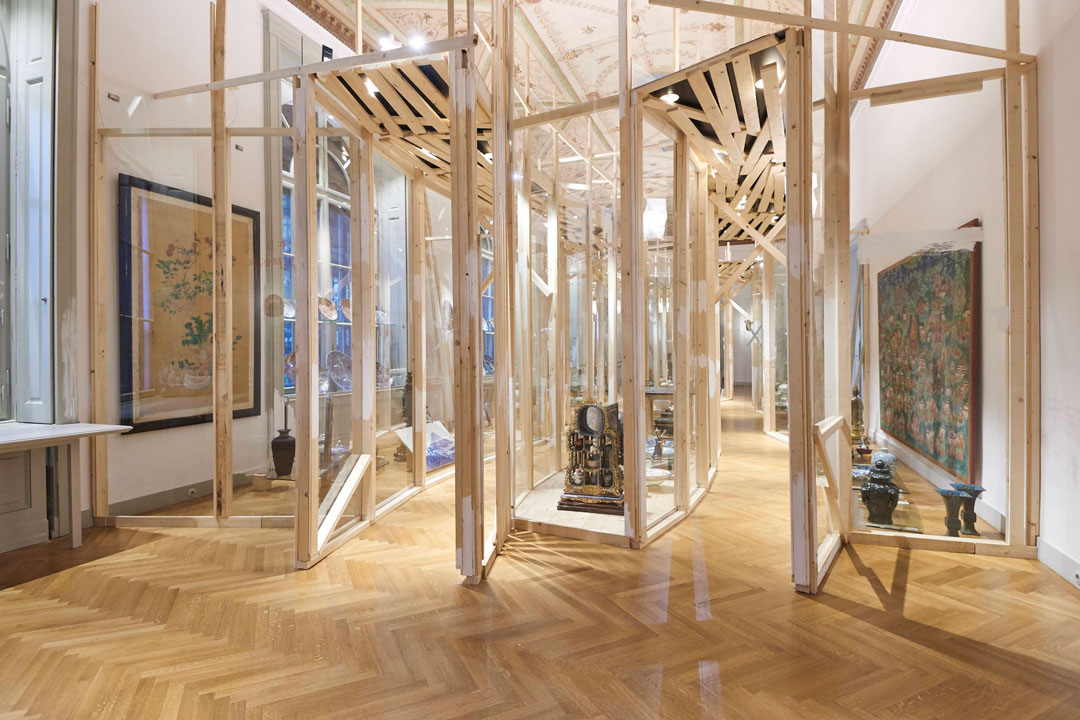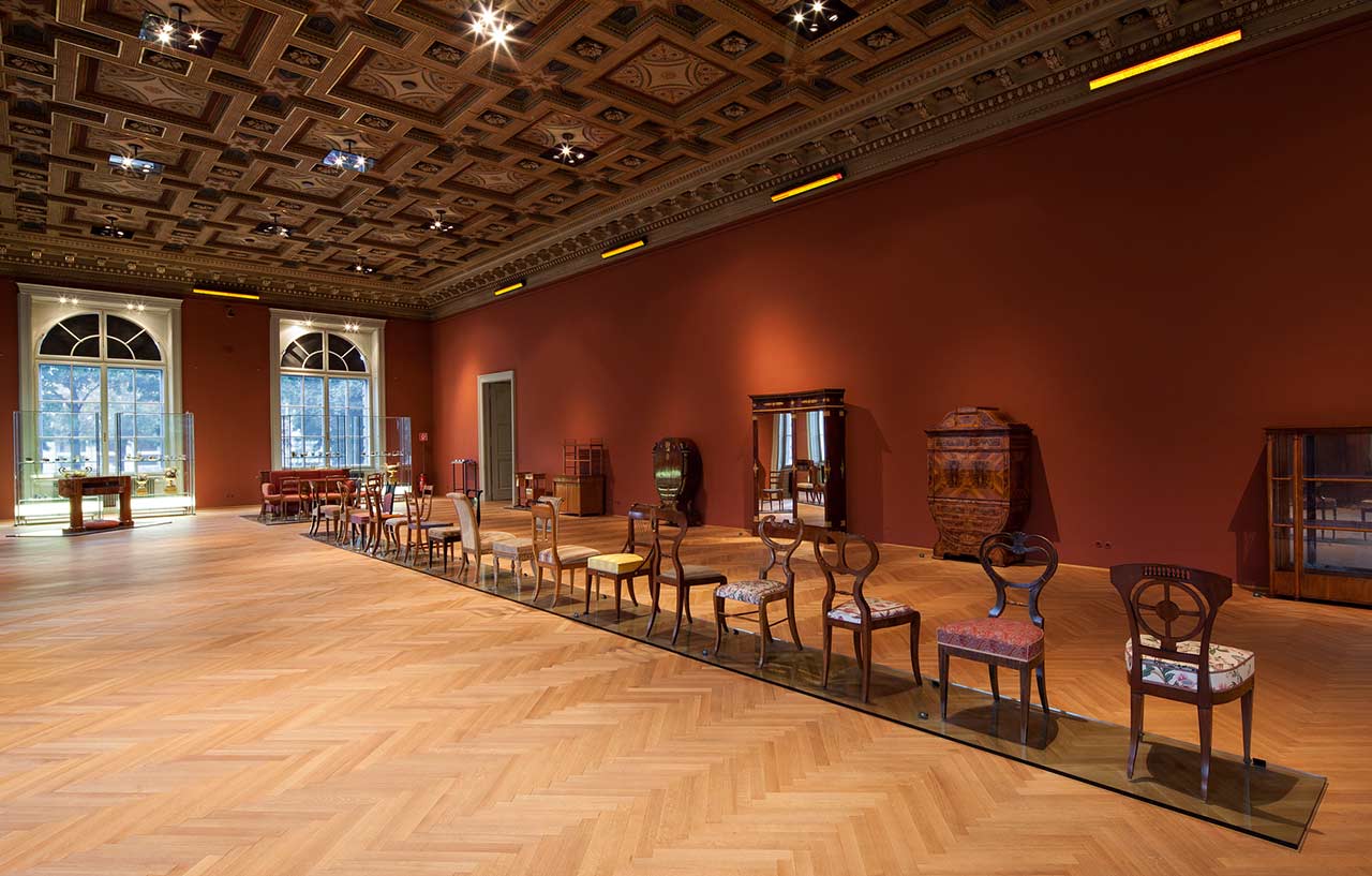 Die Schausammlungsräume folgten dabei einem chronologischen Ordnungsprinzip, wobei bei der Aufstellung keine dichte serielle Präsentation im Vordergrund stand, sondern das Ziel, herausragende Exponate der Sammlung kongenial zu präsentieren. Die eingeladenen Künstler*innen, deren Interventionen in intensiver Zusammenarbeit mit den jeweiligen Sammlungsleiter*innen des MAK entstanden, fanden unterschiedlichste Ansätze und Lösungen.