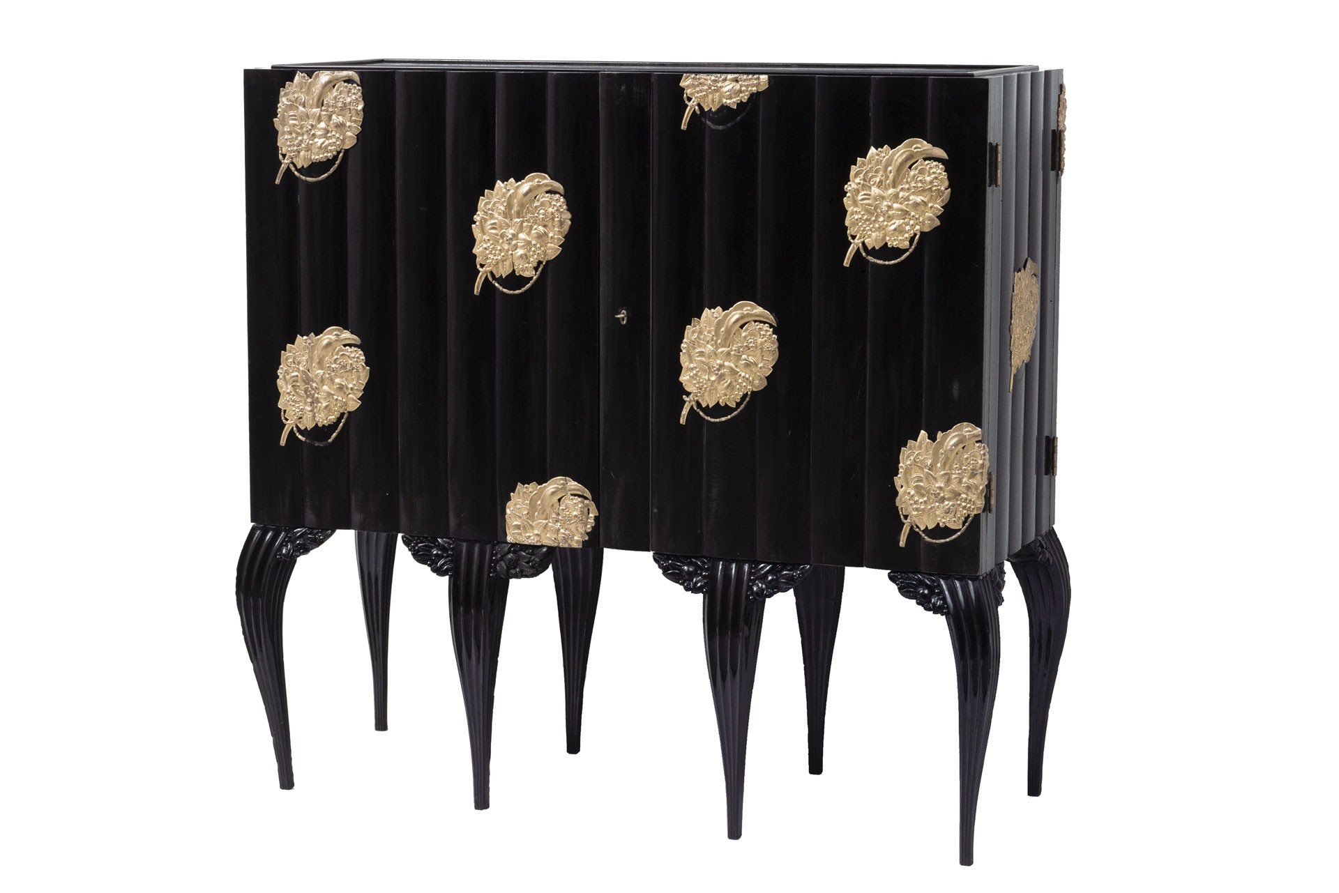 Dagobert Peche, Salonschrank, 1913 Ausführung: Jakob Soulek Birnbaumholz, schwarz gebeizt; Lindenholz, geschnitzt, vergoldet MAK, H 2814 © MAK