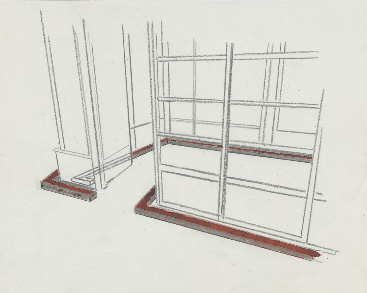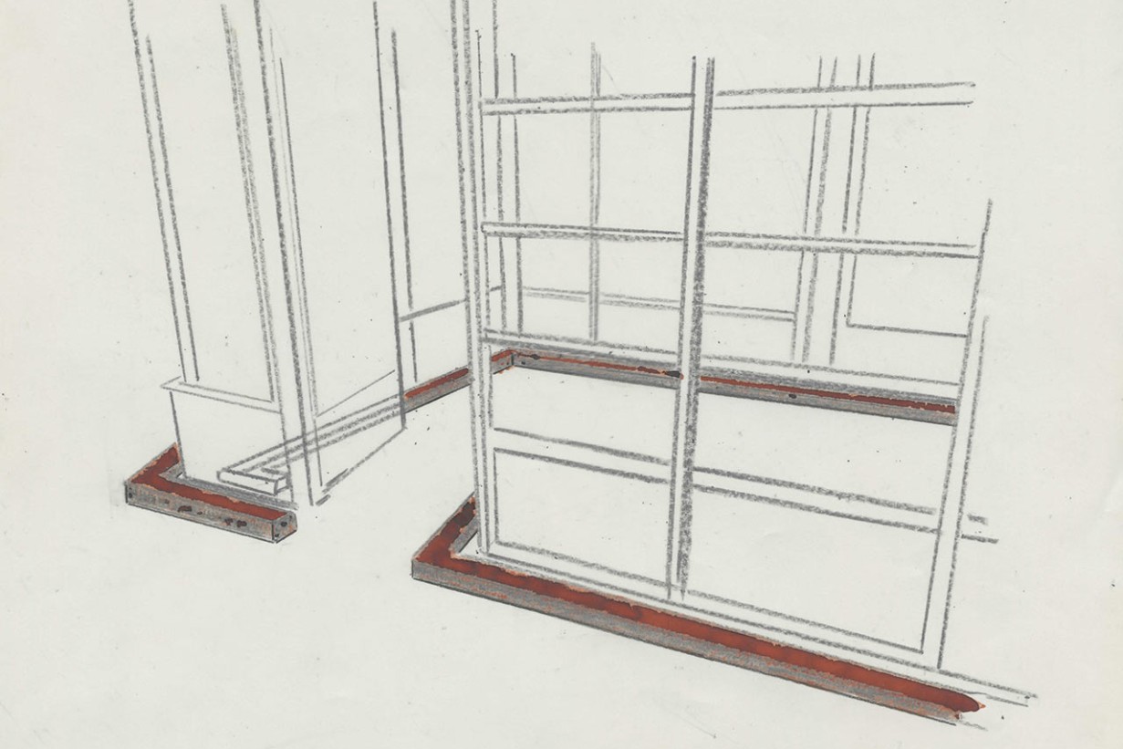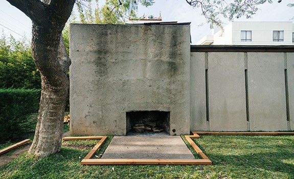 Mit einer Skulptur und zwei Standorten literalisiert die Künstlerin Carmen Argote unser Verständnis von architektonischem Raum als klar definiert und abgegrenzt vom nicht-architektonischen Raum, wobei sie den Grundriss des Schindler House als Inspiration und Orientierung verwendet.