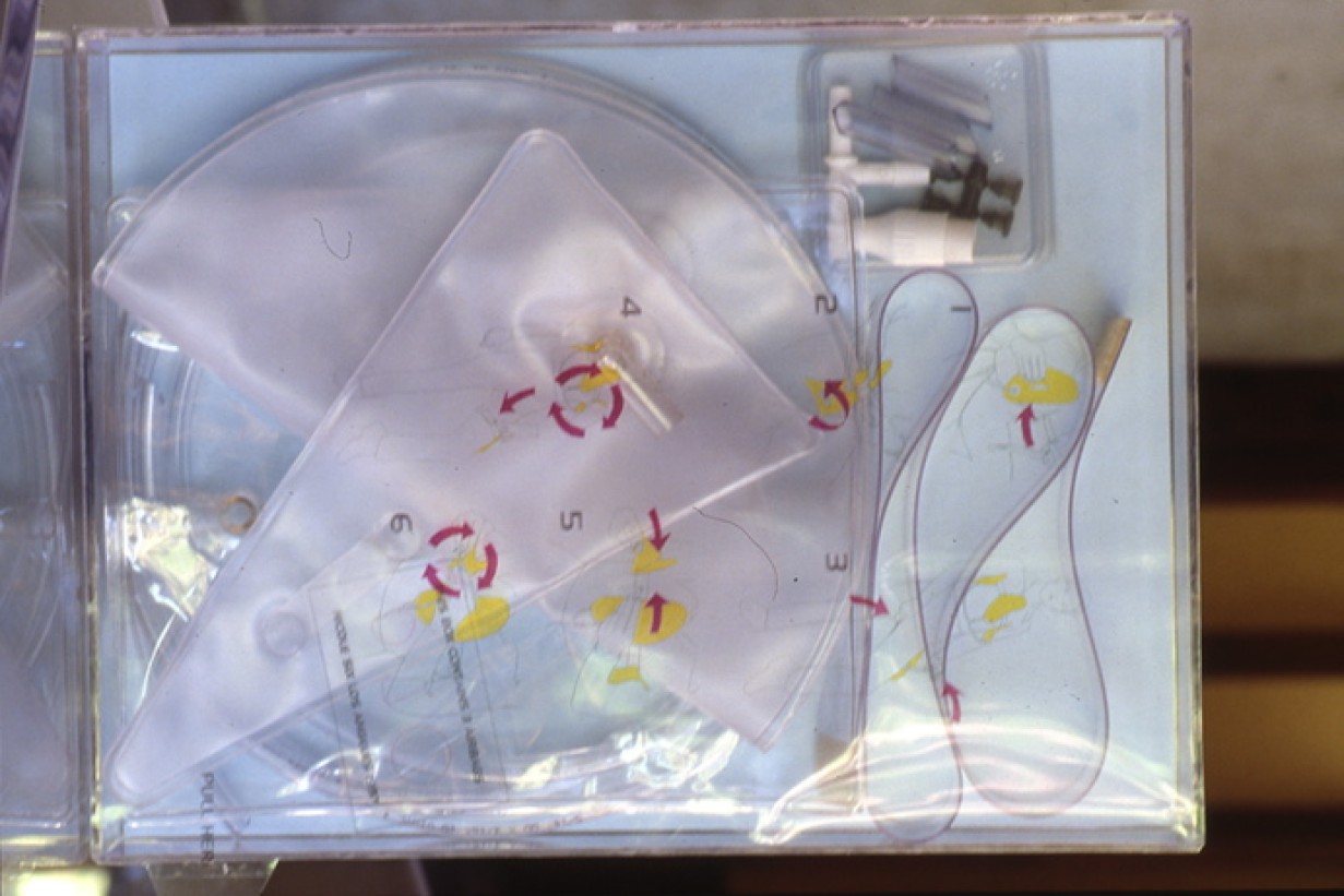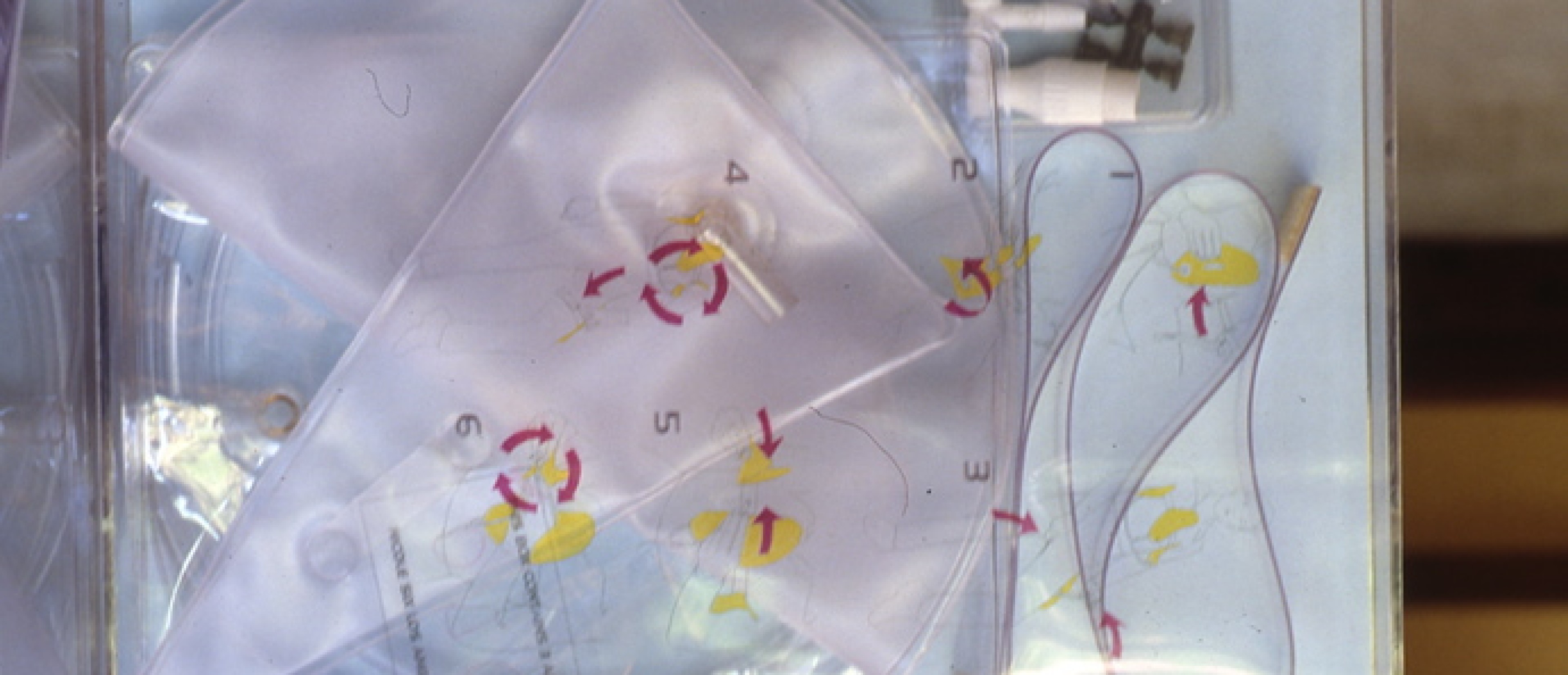 Nicole Six's "Bag Growing Under: Airbag Testruns 1997" consisted of "airbags" she had designed to be worn by individuals. These airbags functioned as artificial body parts and could be used to express different emotions. The wearers tested the airbags in different Los Angeles locations and documentation of these "testruns" was presented at the MAK Center.