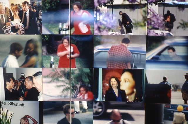 G.R.A.M. partners Martin Behr and Guenther Holler-Schuster exhibited their "Paparazzi" project. Utilizing the methods of Hollywood paparazzi, G.R.A.M. photographed their neighbors in the course of daily life on the street. The long lenses and quick shooting techniques of paparazzi often yield fuzzy images of interrupted actions, which lend an air of suspense to these photographs. The images seduce the voyeuristic viewerprepared by the experience of movies and other mediato create stories out of ordinary activitiesthe "conspiracy" or "drug deal"that are often more dramatic than reality.