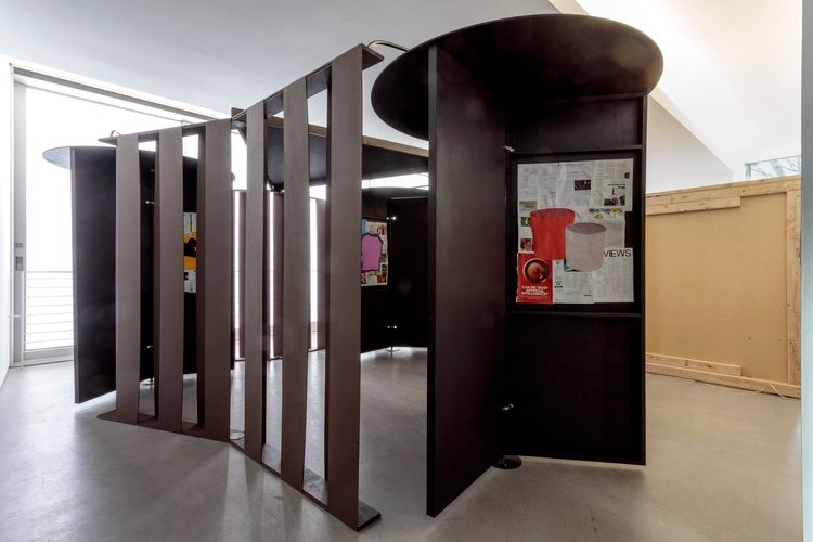 The Visitor besteht aus zwei architektonischen Arbeiten: The Future Zone von Alfredo Barsuglia und Pavilion of the Present von Alice Könitz, beides Teile einer großformatigen begehbaren Skulptur.