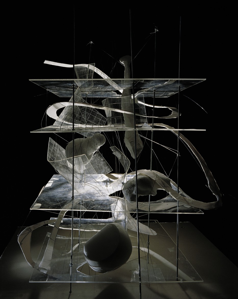 Die sich selbst als postindustrielle Expressionisten bezeichnenden Architekten gründen ihre Arbeiten oft auf spontane und psychografische Bilder und Modelle, die scharfe, erratische und schwebende Formen vorstellen. BLUE UNIVERSE veranschaulicht den Denk- und Arbeitsprozess durch Fotografien zahlreicher Projekte und präsentiert zusätzlich Modelle von COOP HIMMELB(L)AU. Die Entwicklung der Formen von COOP HIMMELB(L)AU lässt sich an Hand der Aufnahmen der Modelle in verschiedenen Experimentierstadien nachvollziehen.