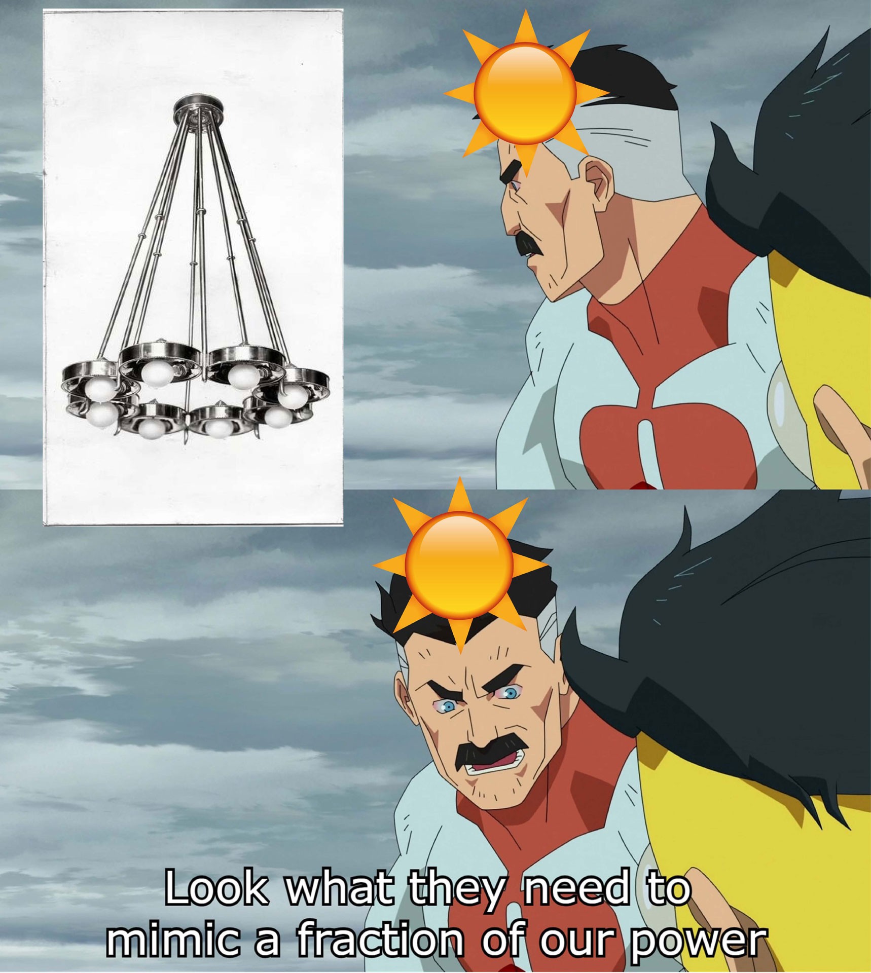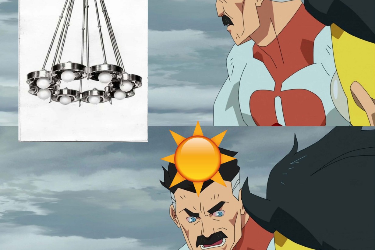 Johanna Pichlbauer, Meme Look what they need to mimic a fraction of our powe, 2021, Adaption of a well-known meme featuring a lustre by Josef Hoffmann © Johanna Pichlbauer