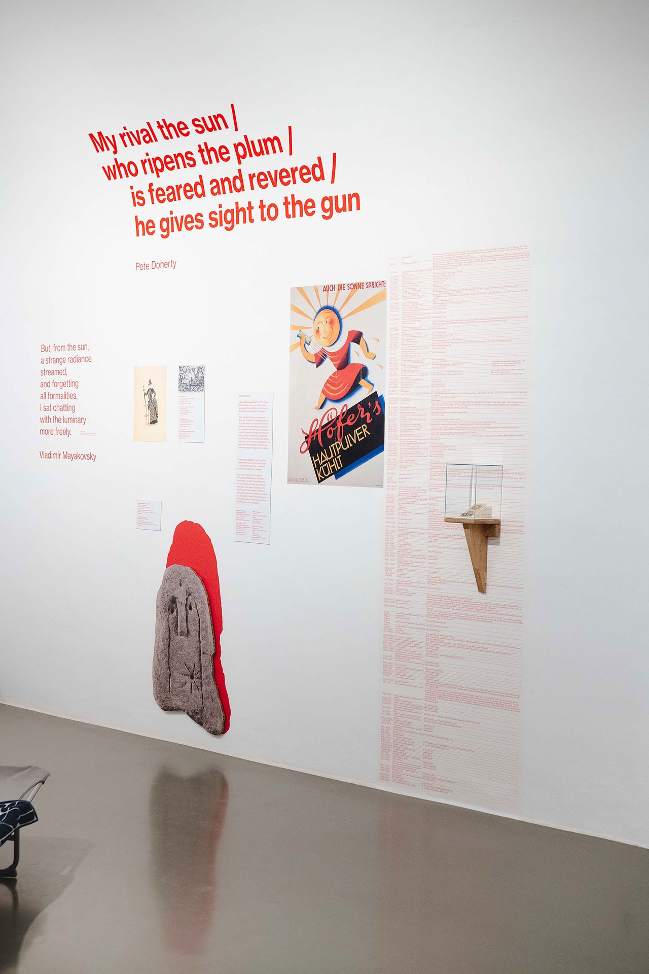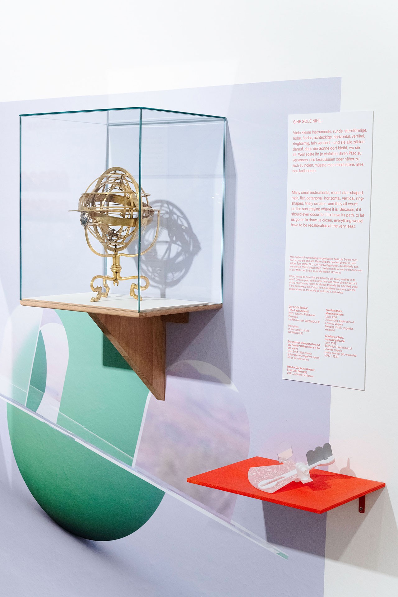 Während der Solarpark von der Auszeit träumt, umkreist Johanna Pichlbauer mit der Sonne einmal die MAK-Sammlung: Ausgewählte Objekte erzählen von der Designarbeit, die nötig ist, um Sonnenenergie in Zeitgefühl, Wohnträume und andere Geschichten umzuwandeln. Dabei entwickelt Pichlbauer ihr eigenes Narrativ aus Objekten, Collagen, Zitaten und Charakteren, die auf unterschiedliche Assoziationen mit der Sonne anspielen.