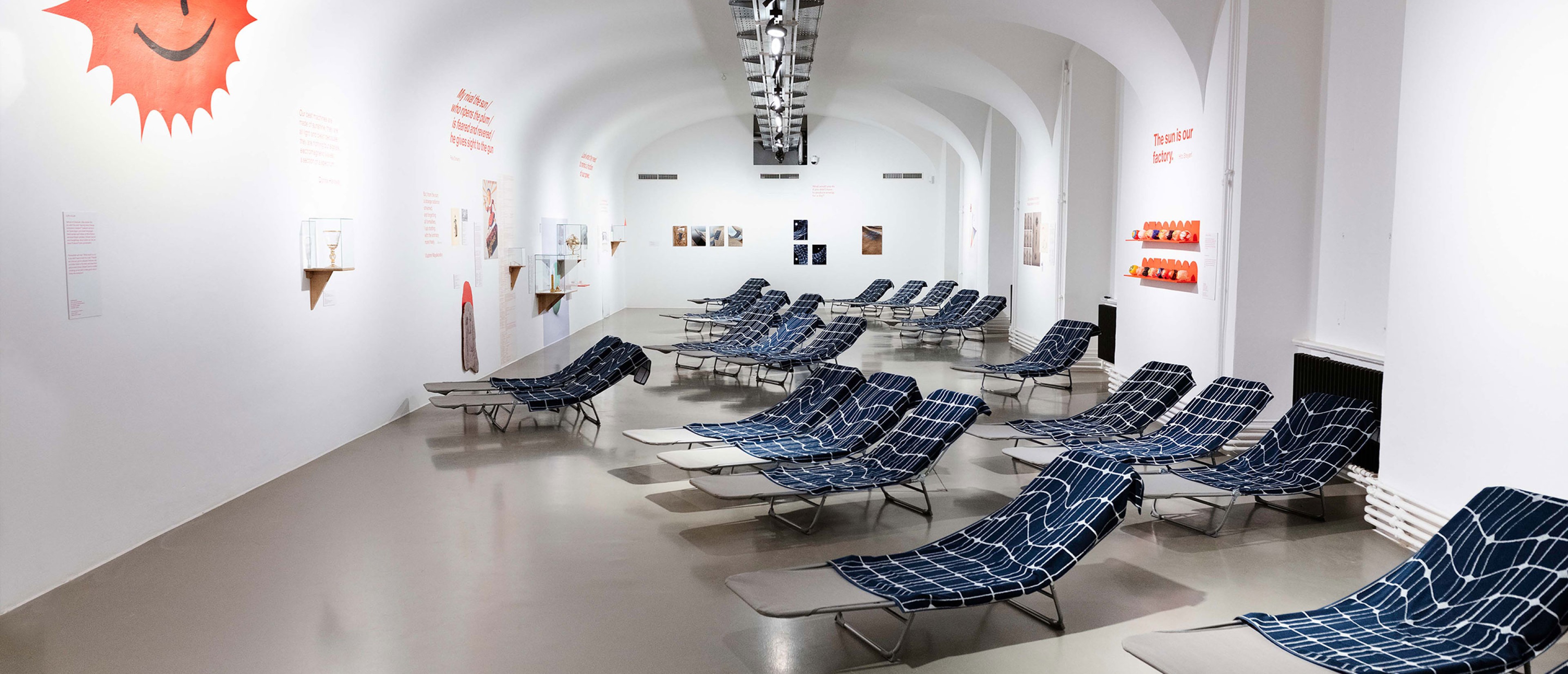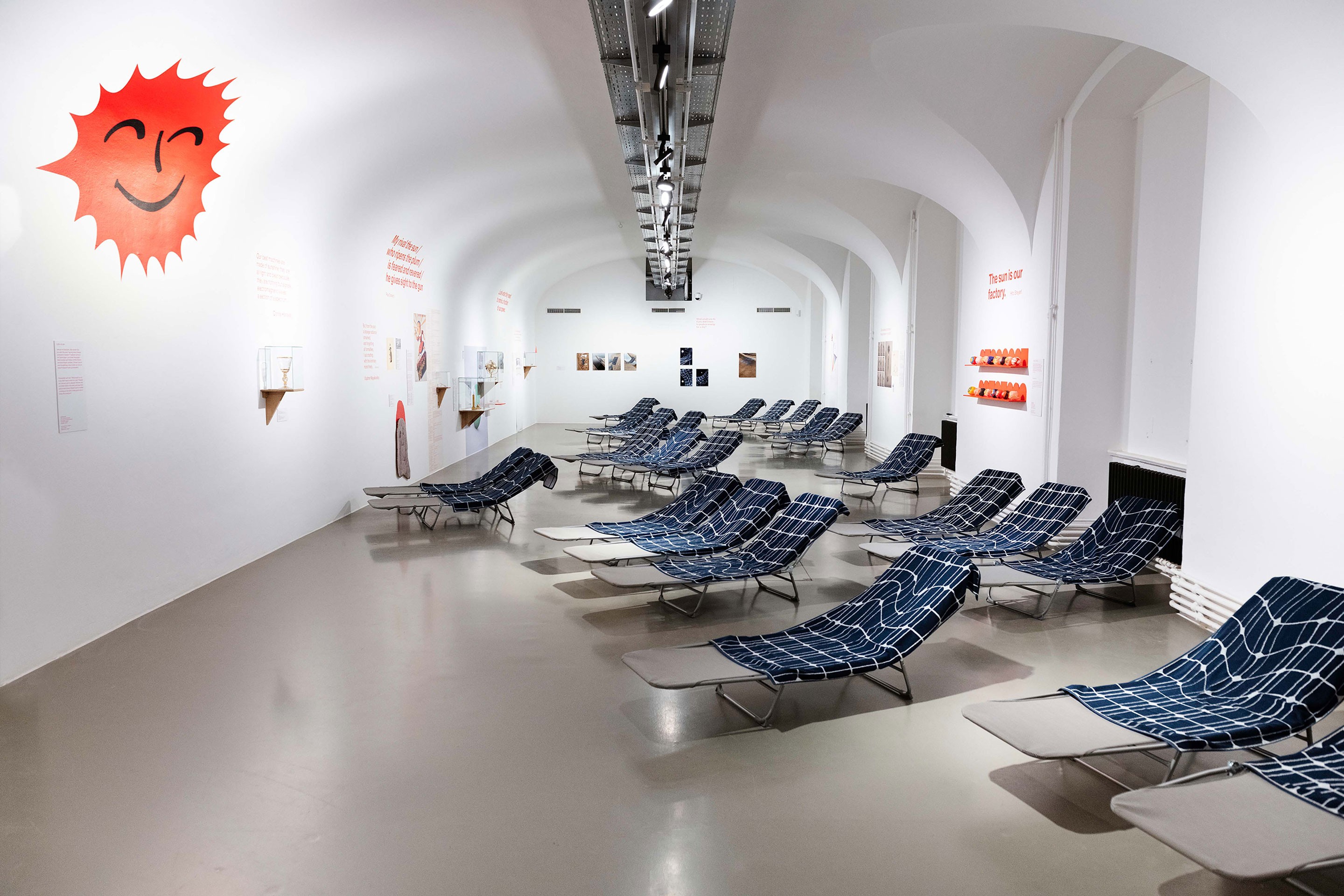 In ihrer Einzelausstellung There will be! People! On the Sun! Soon! widmet die Designerin Johanna Pichlbauer eine abwechslungsreiche Gesamtinstallation ganz der Sonne. Unter viel Gestaltungsaufwand haben wir Menschen das Zusammenspiel mit der Sonne perfektioniert: Wir lassen ihr Licht in unsere Häuser, Lebensmittel von ihr reifen, unsere Haut bräunen – und auf unseren Dächern glänzen Photovoltaikanlagen mit abstrakten Mustern.
