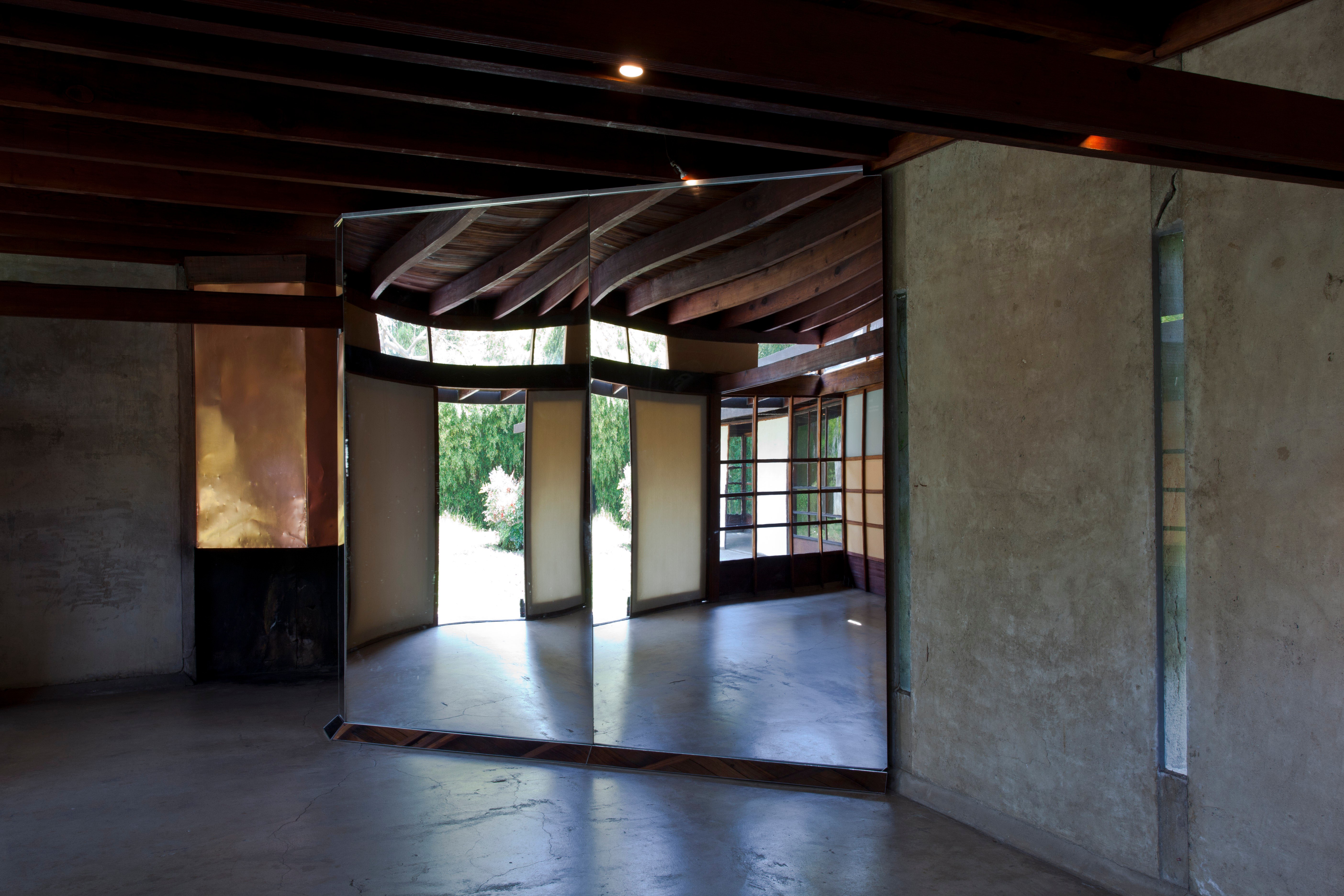 Im Rahmen des neuen Ausstellungsformats Schindler Lab sollen jeweils ein Künstler/ eine Künstlerin und ein Architekt / eine Architektin aus der jungen lokalen Szene komplementäre Installationen einzeln oder in Zusammenarbeit für das Schindler House konzipieren, um ihre Sichtweise von Schindlers Logik und Methoden zum Ausdruck zu bringen. Während der Rechercheaufenthalte im Vorfeld der Ausstellung können sich die Künstler und Architekten mit den Räumen des Schindler House vertraut machen und ihre Arbeiten ortsspezifisch entwickeln. Booth und Grant reagieren mit Installationen aus Spiegel und Glas auf die Gegebenheiten. Sie lenken damit den Blick des Betrachters auf die rhythmischen Strukturen des Gebäudes, in dem diese Materialien zu finden sind. Beide Installationen werfen Fragen zu den verwendeten Materialien auf, die, in ihrer Funktion als Verbindung zwischen Innen- und Außenraum, die Verschmelzung des imaginären und realen Raums ermöglichen.