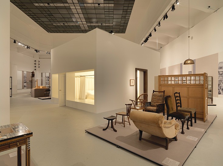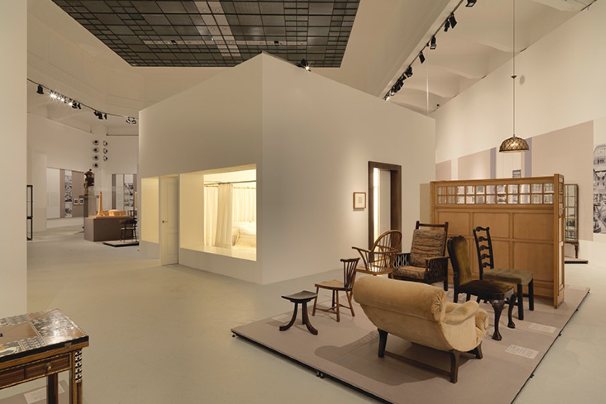 Das zentrale Kapitel ist den Jahren um 1900 gewidmet. Anhand von Originalzeichnungen, Gebrauchsgegenständen, Möbeln und Modellen werden die beiden gegensätzlichen Interpretationen moderner Lebensweisen einander gegenübergestellt. Ein zentrales Thema ist das moderne Stadthaus: Das „Looshaus“ am Wiener Michaelerplatz und Hoffmanns Palais Stoclet in Brüssel. Erstmals werden Rekonstruktionen zweier fast gleichzeitig entstandener Innenräume von Loos und Hoffmann gezeigt. Im Schlafzimmer aus Josef Hoffmanns Wohnung Salzer (1902) sind alle Objekte in einem strengen Quadrat-Ornamentsystem angeordnet, während das Schlafzimmer aus Loos‘ eigener Wohnung (1903) Intimität durch die Sinnlichkeit von Textilien evoziert, die nicht vom Architekten gestaltet sind.