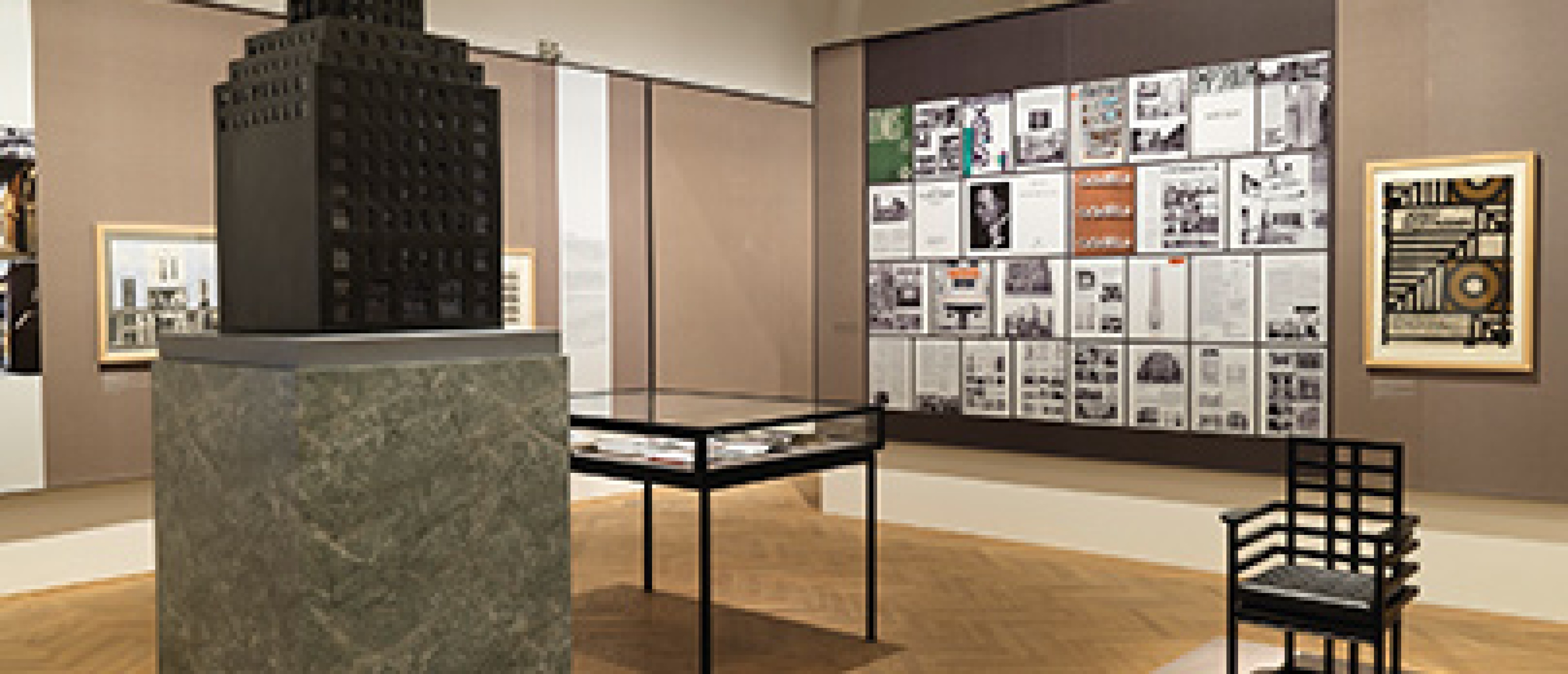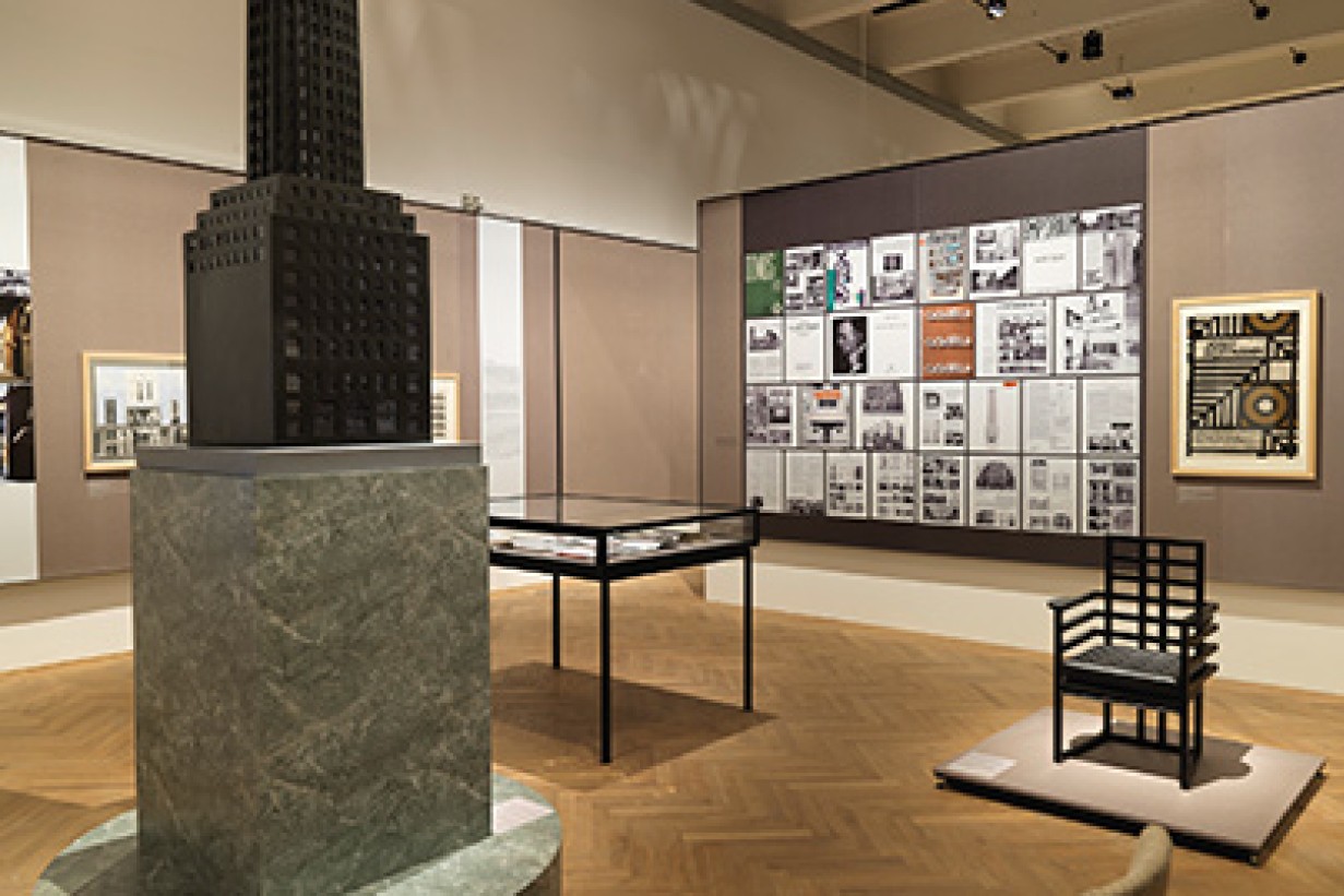 Bildmitte: Adolf Loos, The Chicago Tribune Column, Chicago, Michigan Avenue, Austin Avenue, St. Clair Street, Projekt, 1922; Baukörper- und Fassadenmodell, Maßstab 1:50; Rekonstruktion/Modellbau 1984/85: Hans Hollein, Gerhard Jäger, Günther Ströjnik, Liedl & Schindler; Wien Museum