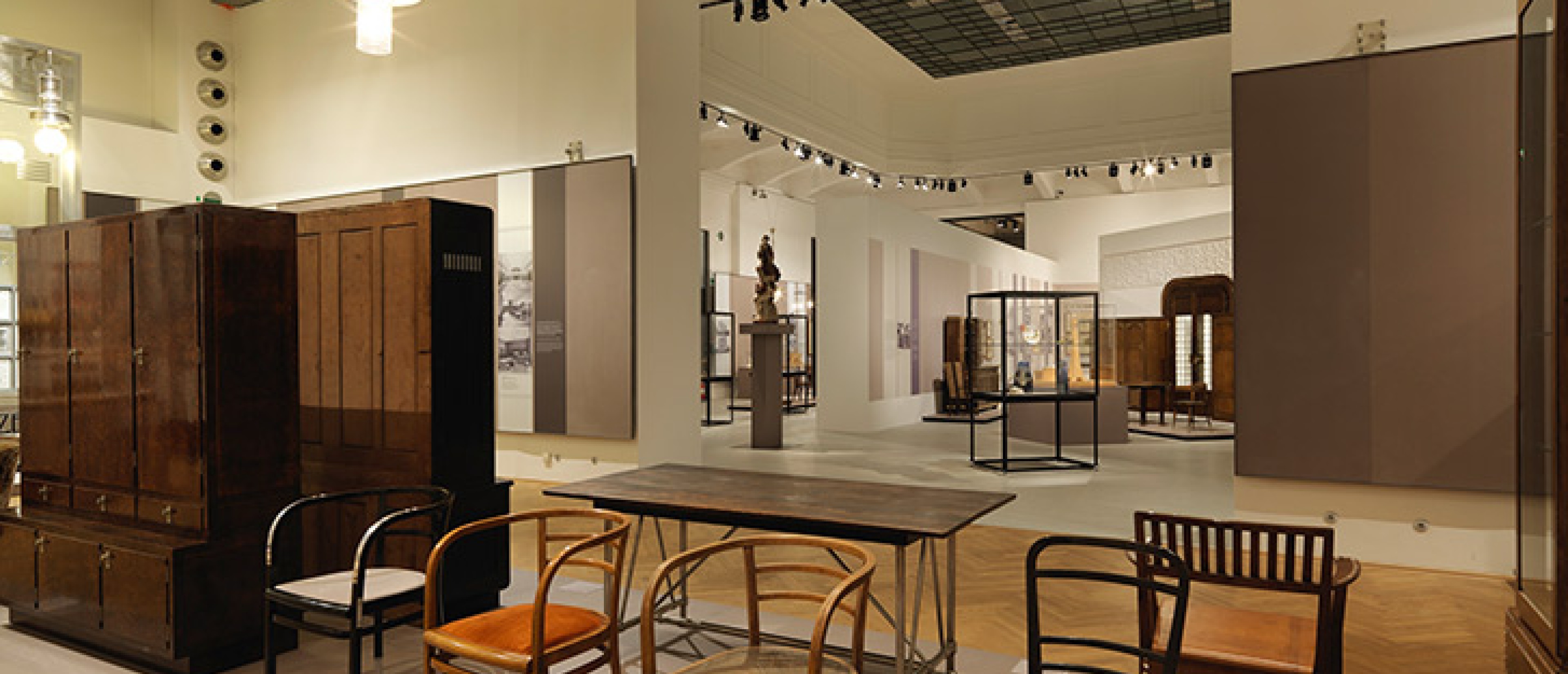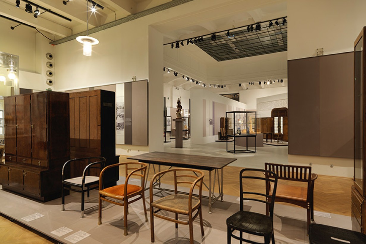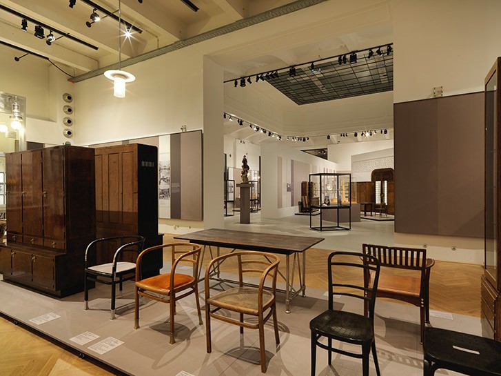 Die Ausstellung zeigt in fünf Abschnitten Vorbedingungen, Hauptwerke und Folgen der Arbeit von Hoffmann und Loos. In den beiden ersten Kapiteln wird – ausgehend von der Etablierung individueller Geschmacksvarianten um 1750 und der damit entstehenden Basis unserer Konsumkultur – gezeigt, auf welchen Leistungen und Entwicklungen ihrer Vorgängergenerationen Hoffmann und Loos aufbauten bzw. reagierten. Im Mittelpunkt stehen die Reaktionen auf die Krise des Kunstgewerbes im Industriezeitalter sowie die Entwicklung einer genuin modernen Formensprache durch Otto Wagner.