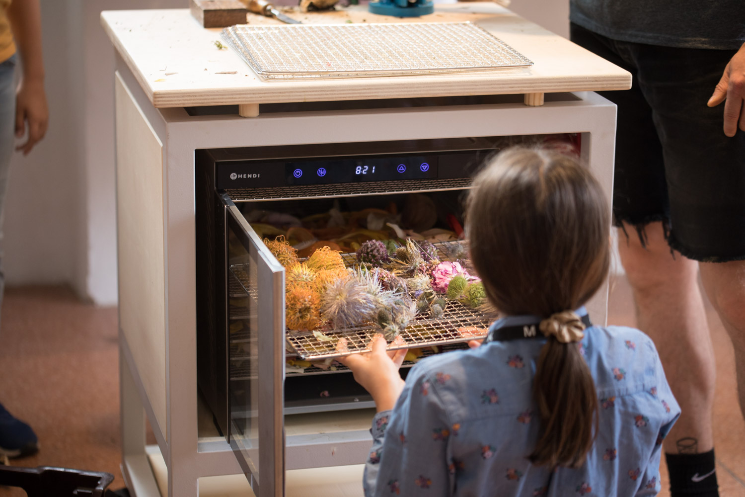 Hier können junge Designforscher*innen selbst Biokunstoff herstellen, Objekte aus natürlichen Materialien wie Eierschalen oder Gräsern pressen, Papier mit Blüten schöpfen, Farben aus Gemüse und Rosen herstellen, Textilien färben und eigene Parfums destillieren. Vorab geht’s ins MAK Design Lab, in dem wir uns mit neuen und alten, natürlichen und künstlichen Materialien, Recycling und Kreislaufwirtschaft beschäftigen.